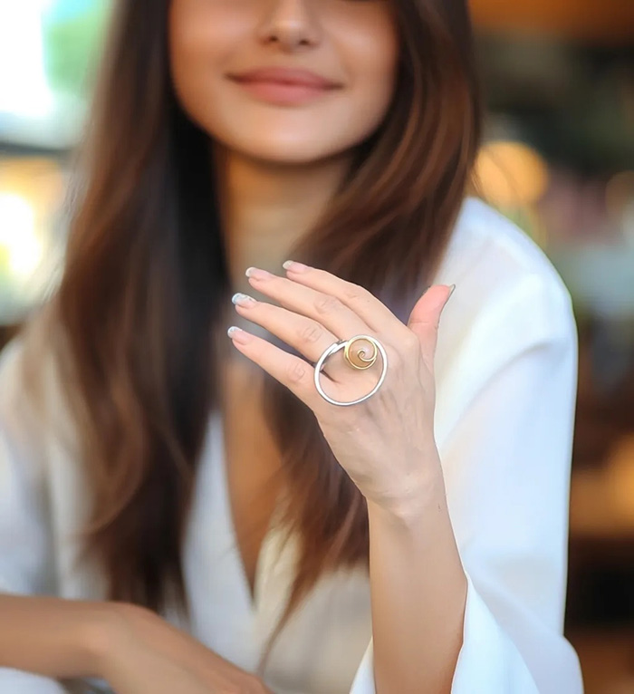 Her iki kullanım şekli de yüzüğün çok yönlü tasarımını ve zarafetini ön plana çıkarır.