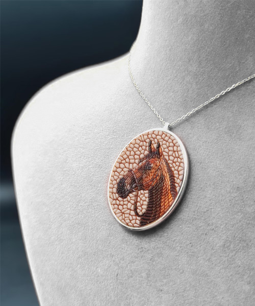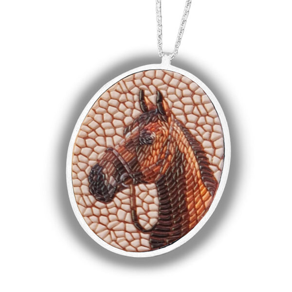 Her bir parçası büyük bir özenle tasarlanan kolyemiz, gümüşün saf zarafeti ile buluşarak eşsiz bir sanat eserine dönüşmüştür. Mozaik teknikleri kullanılarak hazırlanmış at figürü, ince detaylarıyla göz kamaştırır. Bu figür, yalnızca şıklığı değil, aynı zamanda gücün ve dayanıklılığın derin anlamını da taşır.