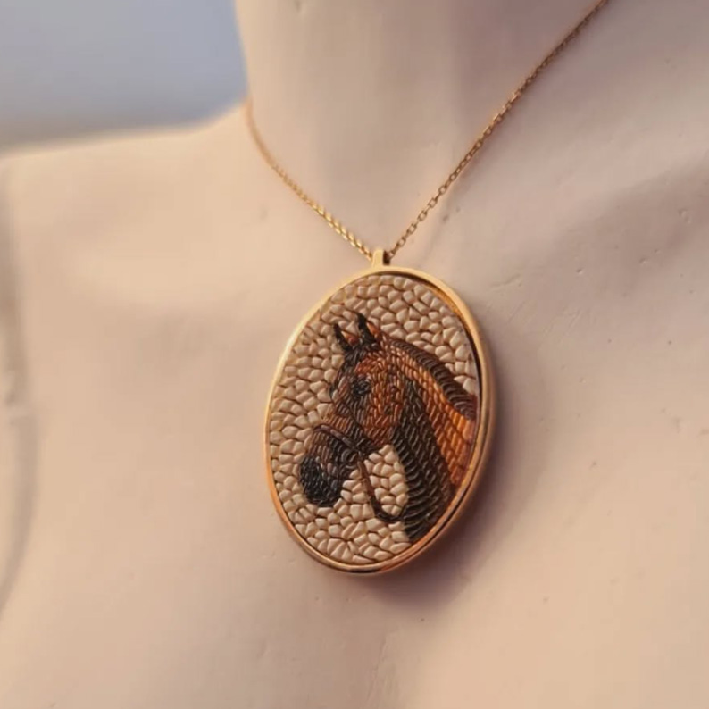 Atlar, tarih boyunca asaletin, gücün ve özgürlüğün en güçlü simgelerinden biri olmuştur. Bu özel Mozaik At Kolyesi, zarif detayları ve el işçiliği ile bu anlamları mükemmel bir şekilde yansıtır.