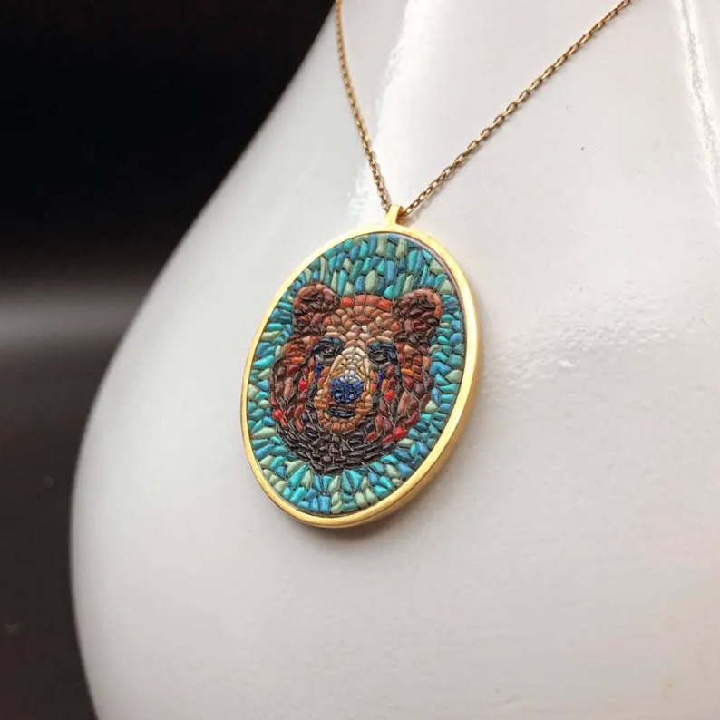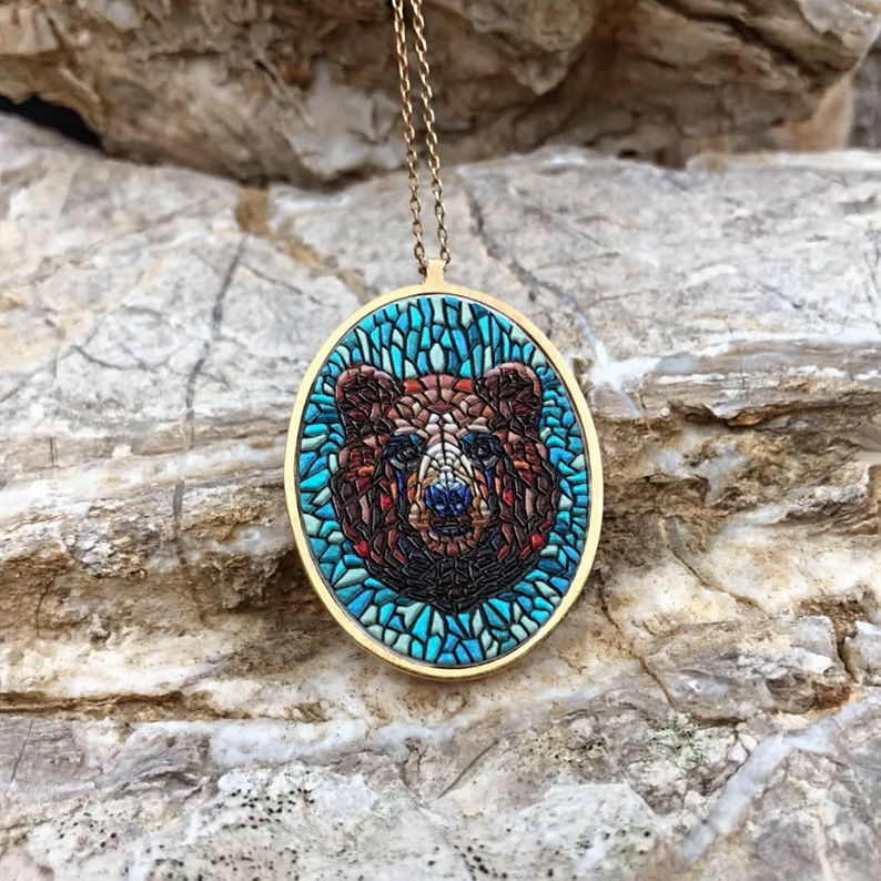 Mozaik Ayı Kolyesi – Doğanın Gücü ve Yalnızlığın Zarafeti