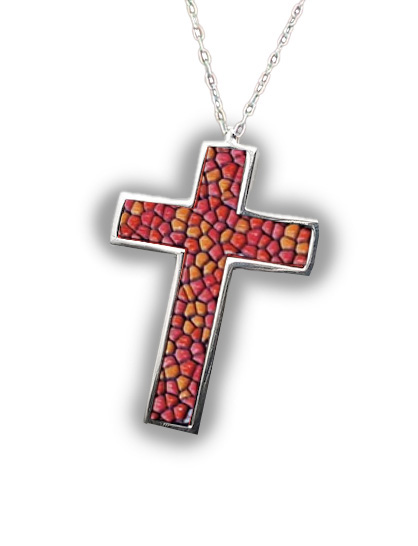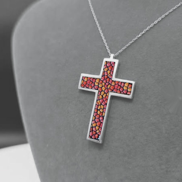 Kırmızı Mozaik Tasarımlı Gümüş Haç Kolye Ucu – İnancın Zarif ve Çarpıcı Bir Yorumu