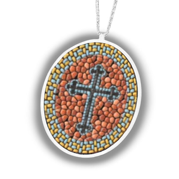 Haç Mozaik Gümüş Oval Kolye – İnancın ve Sanatın Buluştuğu Zarafet