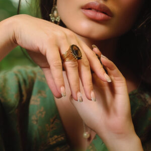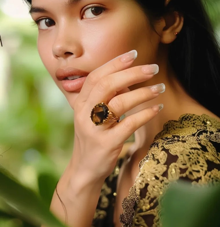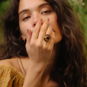 Bu yüzük, vintage stil sevenler için mükemmel bir tercihtir. Smoky quartz taşının derin renk tonları, hem günlük hem de özel günlerde dikkat çekici bir aksesuar olarak öne çıkar.