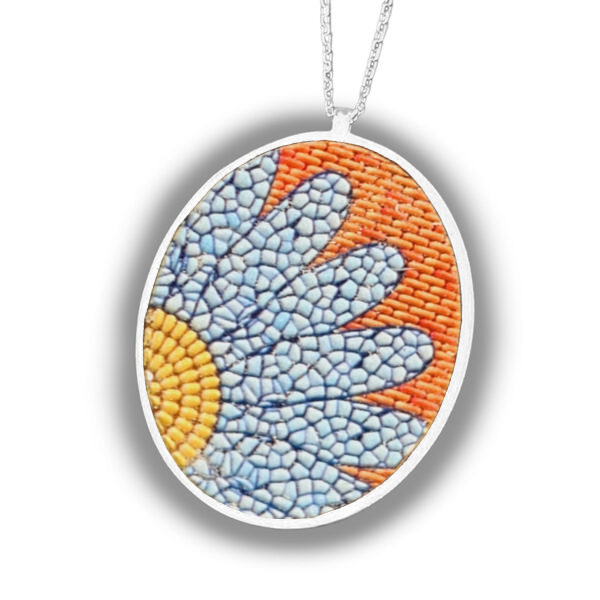 Yarım Papatya Mozaik Gümüş Kolye