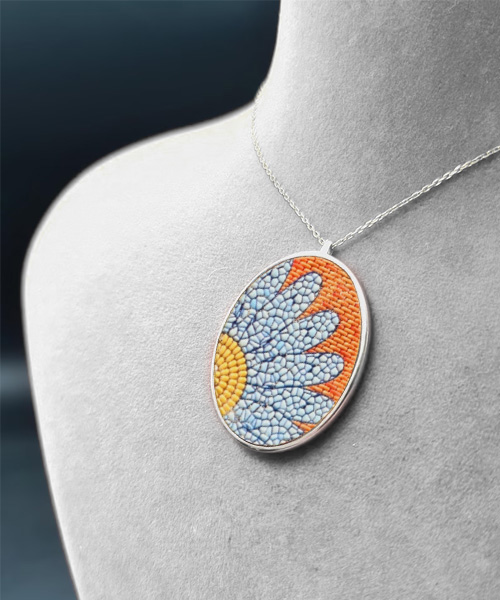 Yarım Papatya Mozaik Gümüş Kolye – 6 Renk Seçeneği